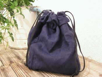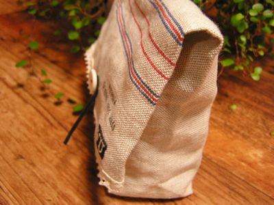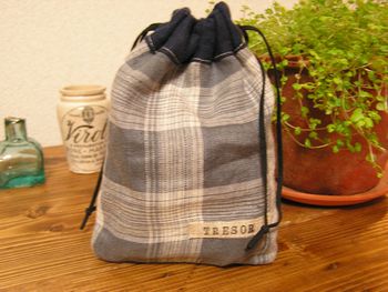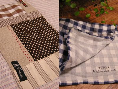 表はブルーグレーのリネンチェック、裏は紺色のフランスリネン。