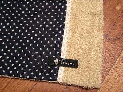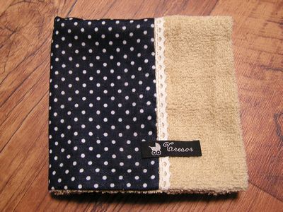 紺の水玉のダブルガーゼ・カフェオレ色のタオル地で作りました♪