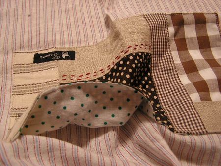 2ポケットは色々なブルー系のリネンでパッチしました。