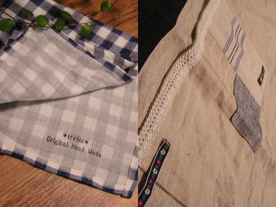 トーションレースとネームタグをポイントにシンプルに仕上げました。裏と表の表情が違い、気分によって、折り方を変えてみてくださいね♪